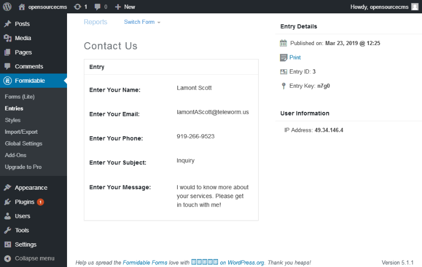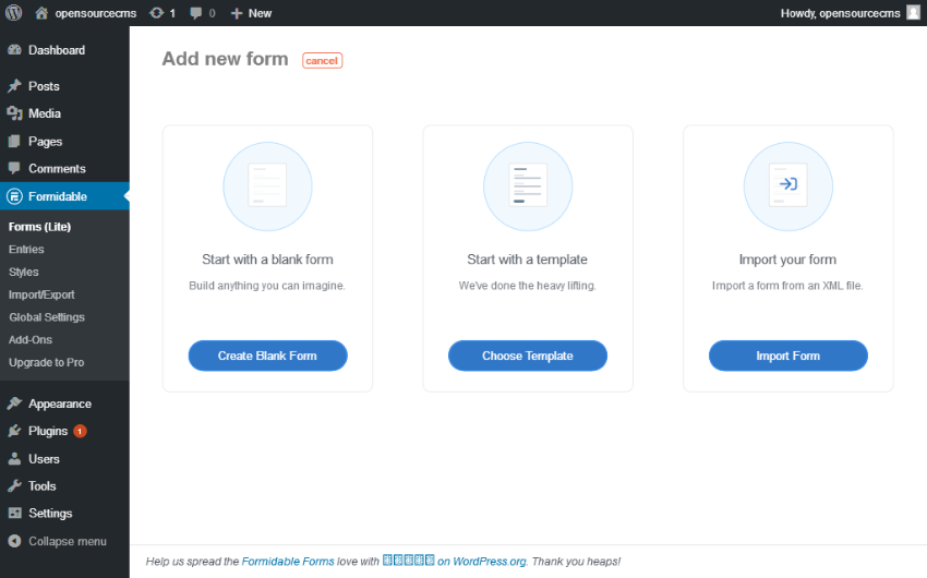 在这篇文章中,我使用了 WordPress 5.1,Formidable Forms 插件版本为 3.06。如果您想按照这篇文章进行操作,我建议您安装它。要安装 Formidable Forms 插件,您只需遵循标准安装流程即可。