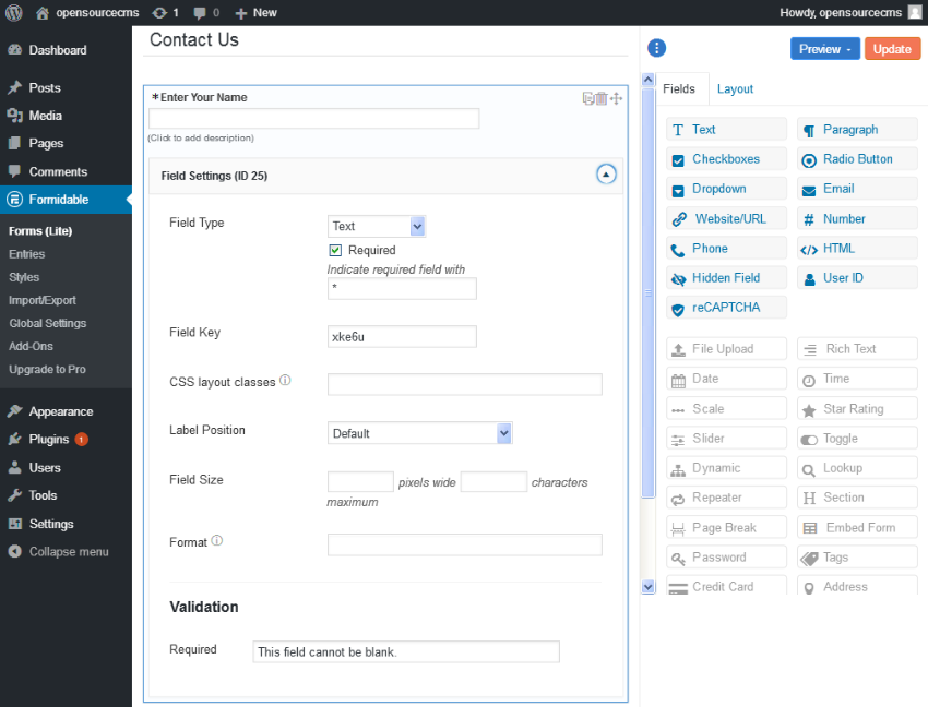 什么是强大的形式?Formidable Forms 插件是一个功能强大的表单构建器插件,它允许您创建不同类型的表单来收集用户信息。它在后端提供了一个拖放界面,使整个过程变得轻而易举。事实上,您可以使用此插件创建您能想到的任何类型的表单,而不仅仅是联系表单。