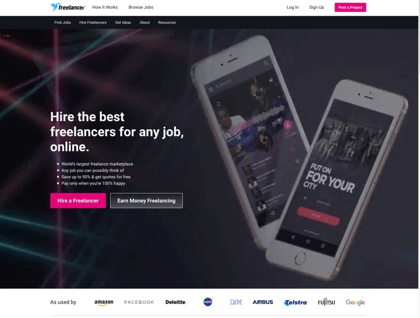 Freelancer 是一个流行的平台,它将企业与自由网页设计师联系起来。它在全球拥有超过 4400 万用户,是一种以实惠的价格寻找才华横溢的设计师的有效方式。