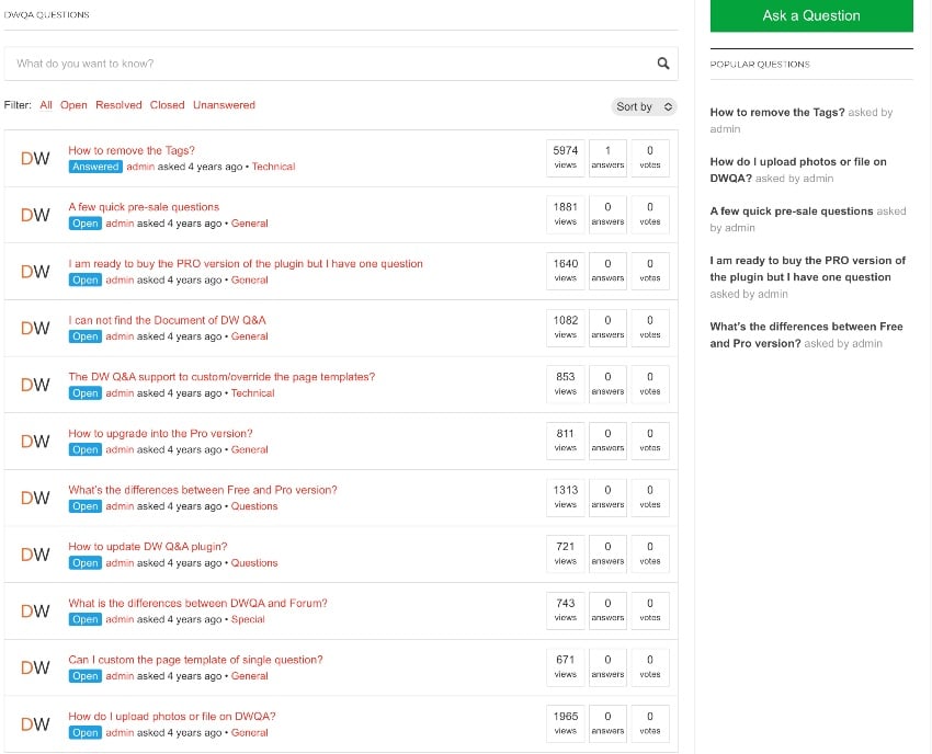 2。 DW 问答专业版:WordPress 插件