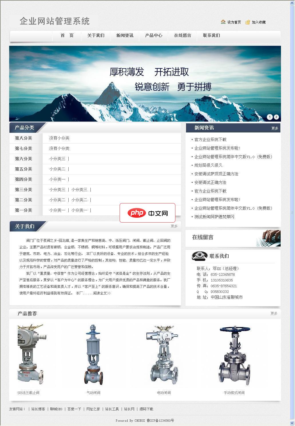 注意:请将此程序放在网站根目录下运行。若没有IIS,请直接运行根目录下的 测试.exe 进行本地测试。 基本功能表基本设置:后台可修改联系方式,网站信息。管 理 员:可新增管理员。自定义导航:新增修改导航菜单、菜单排序等。单页管理:单页面新增关键词和描述等。新闻增加:新闻可设置标题、新闻分类、添加内容等。新闻管理:可分类查看新闻、修改新闻、删除新闻等。产品管理:产品增加二级分类,产品略缩图、产品
